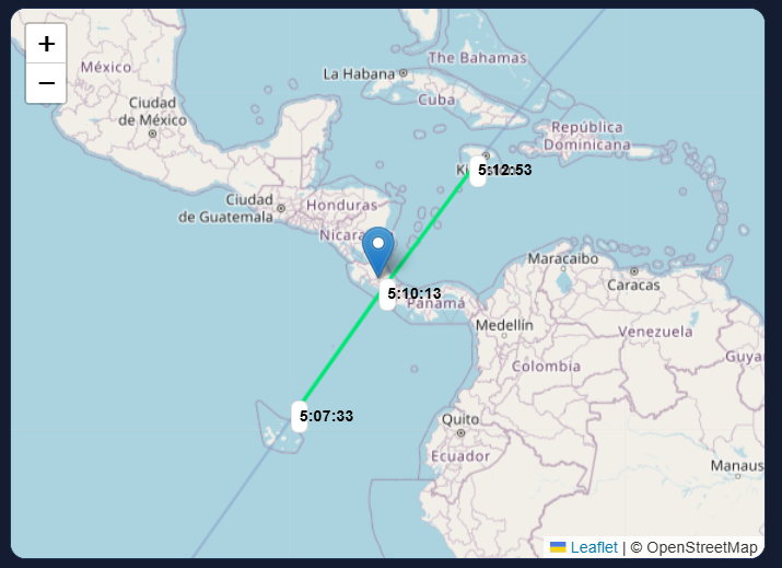 Lista de ciudades de Centroamérica o coordenadas personalizadas (lat, lon, altitud).
